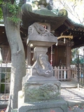 商店街になっている旧東海道を歩いていると、ちょっと奥まったところに小さな神社を発見。子ども連れの狛犬と龍が巻きついたような珍しい石灯籠がありました。解説版はなかったのですが、白い板があったので、準備中かな?