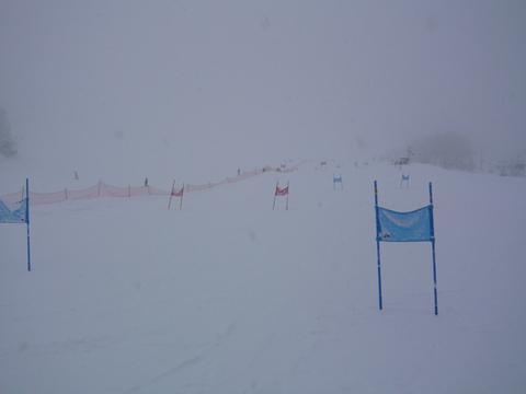 日曜日は大回転競技でした。朝のうち、ちょっと雪が小止みになり、空も明るくなったのですが、すぐに吹雪きに逆戻り。吹雪いた翌日は、快晴ということが多いのですが、予想外の連続荒天です。地元の方も、2日連続でこんなに吹雪いたのは記憶にないというくらいの荒天。私は、朝からトコトコ歩いてスキー学校に行き、またちゃっかりスノーモービルに乗せてもらって出勤です(笑) →ここが、私の持ち場、オペレーションルームです。