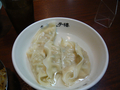 メニューは焼き餃子と水餃子、それにきゅうりともやしだけという、いたってシンプルなもの。当然、全部、頼んでスープつきのご飯でいただきました。餃子は、ニラ・ニンニク入りと、なしとから選べるのですが、狭い劇場で隣の席に座る人の迷惑も考え、ここは「なし」を選択。「あり」のほうがおいしいかもしれませんが、「なし」でもおいしくいただきました。お値段もかなり安いので、焼き餃子を追加したりして(^_^;)