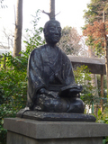 駅から神社まで続く商店街の柱には、幕末を彩った長州藩の志士たちの解説と絵のプレートが貼られていました。だいぶ、薄くなっちゃってるけど……。到達した神社は、こんな高級住宅にあんれ、まぁ〜というくらい広い境内。境内には松陰先生の像や旧大山道(いまの世田谷通りだそうです)に建てられていた松陰神社道の道標なども残されています。