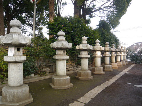 社殿の左奥には吉田松陰ならびに長州藩の志士たちのお墓所があります。神社にお墓……、あるんですね。蛤御門の変で幕府が松陰先生のお墓を壊しちゃったお詫びに送った石燈籠などもありました。明治になっちゃったからには、お詫びをしておかないとねぇ(笑) 境内には立派な石燈籠がずらっと並んでいます。32基もあるそうな。これらは伊藤博文や山県有朋などから1908(明治41)年に奉納されたものだそうです。明治政府のお歴々が深く頭を垂れた場所なのでしょう。いまも平日の中途半端な時間であるにもかかわらず、ポツリポツリと参拝の方々の姿がありました。