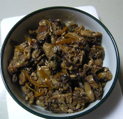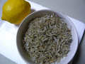 牡蠣の佃煮ばかりではなく、炒ったジャコもいただきました。レモンをかけてあっさりいただくといいと、レモンまで添えて。時間指定の宅配便で、食事の時間のちょっと前に到着するように送っていただき、本当にご配慮の行き届いた贈り物で、感謝感激です。一緒に入れていただいた広島菜は、私の大好物だとご存知だったのかしら?
