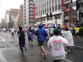 ところがあいにくの雨模様。長いリボンは水を吸ってぐっしょり濡れ、とても大きく振り回すわけにはいきません。沿道の見物も多いので、もともと振り回すことはできなかったかもしれませんが。浅草橋は、折り返し点のすぐ近くなので、行くランナーと折り返してくるランナーで、ランナーがうじゃ〜という感じ。ゼッケン番号がわかっていても、とてもじゃないけど、走っている姿を見つけ出すことはできません。