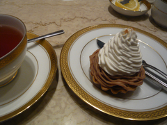 ゆとりがあって、隣の席の人に話が聞こえないところという意味では、いい店を選択したかもしれません。めったにケーキなど食べない私も、ここはお付き合いでモンブランを。相手もモンブランを選び、2種類のモンブランが並びました。丸い器に入っているのが和栗、背の高いほうは……なんだっけ? あまり甘くなくて、おいしゅうございました。甘いものを好まないなどといいつつ、ここのところ和洋、食べすぎです!