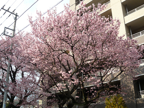 先日、真夜中に寒桜の下を通って、「お、もう、こんなに咲いている!」と驚いたので、今日は昼間にちょっと遠回りをして通りかかってみました(^_^;) 「うわっ、もう散りかけている!」でした。今日、明日は東京地方はめっぽう寒く、雪が降るかも……などと予報士はおっしゃっているのに。写真を撮っていたら、見ず知らずの方に「撮影ですか、ご苦労さまです」と言われてしまいました。いや、ご苦労さまって……。ポケットサイズのデジカメで、しかも片手で持ってシャッターを押してただけなんですけど(^_^;)