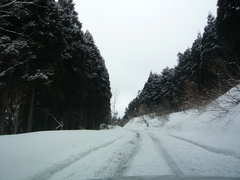 この新しいリフトに乗るには、中社ゲレンデからリフトに乗って中腹まで行き、トラバースして乗り継ぐというスタイルなのですが、上のほうにある中社ゲレンデ駐車場が新リフト乗り場の目の前だというので、クルマでそちらに向ってみました。が……。表通りから駐車場へ向う路地はまったく除雪されておらず、「行けるの?」という感じ。それでも、四駆なら大丈夫だろうと進んで行きましたが、けっこうビクビクもの。