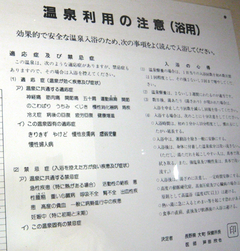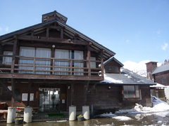屋根つきの露天風呂の浴槽で、明るく開放感があります。お湯に浸かりながら雪をたたえた白馬三山が眺めるのはとてもリラックスできます。私が行ったときは、午前中だということもあったでしょう、数人しか入っている人がいなくてゆったりと温まることができました。午後になると、昼間、スキーやスノーボードを楽しんだ人々がどっと押し寄せるそうです。塩分が濃いお湯なので身体がよく暖まります。関節に少々難ありの私などは、温泉好きではなくてこういうところに沈没してたほうが本当はいいのでしょう。疲労回復のほか、美肌の効能があるそうです。ちったぁ〜、きれいになったかしら?(笑)