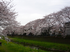 「日本人はタイムセールが好きなんじゃない? 桜は期日限定だから、なんか見なきゃ損するみたいな」といったら、オーストラリアの友人に妙に納得されました(笑) 日本人はタイムセールが好きなんですかね? 中国人は梅が好きだといいます。長く楽しめるものにお得感をもつのが中国人? パッと咲いてパッと散る、瞬間的なものを愛するのでしょうか。花火も日本人は大好きで、日本ではとっても発展した文化ですから。強風の中、お花見をしているグループもたくさんありました。そぞろ散歩の方々もいっぱい。気温もまあまあ高かったので、もう川の中に入って遊んでいる子どもたちの姿も見かけました。まあ、理屈はともかく、満開の桜並木は美しい!