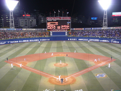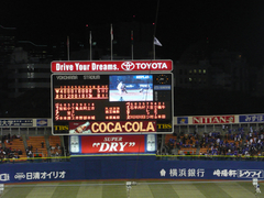 セリーグが開幕して、5日目。やっとホーム開幕ということで、横浜スタジアムに行ってきました。浜スタの開幕試合は昨日だったのですが、「満員かなぁ〜」と、事前準備をしていなかったため不参加。実際は、入場者数2万3000弱だったようですが、「鼻水も凍るぞ!」というくらい寒かったらしく、今日にして正解? 今日も寒いことは寒くて、帽子、マフラー、タイツにダウンコートという出で立ちに、手袋までもっていきました。まだ、ナイトゲームは我慢大会ですね。
