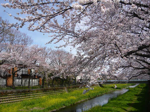 お天気になって、気温も上がって、1週間にわたって観察してきた野川の桜もほぼ満開になりました。ときおり飛ばされそうになるくらいの強風が吹いていて、風の音が怖いぐらいです。風邪に押されてふらついたりして。けれども、まだ若い桜の花びらはしっかりしていて、風に散ることはありません。青空に伸び上がり、風に揺れている姿もきれいですね。