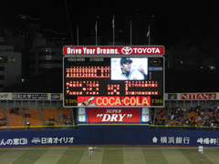 この寒いのに、凝りもせず、今日も浜スタに出勤して参りました。ファンクラブのペア招待券が当たった方がいて、昨日、今日と、片割れとしてご招待いただいていたのでありました。今日は、昨日に比べれば寒さはほどほど(笑) まだナイトゲームを楽しむというには程遠い寒さではありますが、ガタガタ震えながら修行のようにゲームを見るというほどではありません。しかも観戦試合全勝! 勝利の女神営業中です(笑)