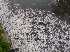 地面に落ちた花びらや、川面に浮いている花びらもそれなりにきれいです。川波が立てば花びらも揺れて、着物の模様のようです。和服の柄というのは、デザインではなく「実写だったのだなぁ」などと感じました。久しぶりに長距離を歩いた感じで、野川公園に着く頃にはヘロヘロ。帰りは、バスにでも乗りたいところだったのですが、路線がない……。