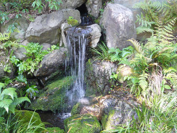 無料で解放されている庭は、入るとすぐに小さな滝があったり、竹やぶがうっそうと繁っていたり、広いお庭です。あとからできたのでしょうけど、途中を道路が横切っているので、邸宅は地下道を潜り抜けてまた別の庭の中にあります。庭のところどころにはベンチや東屋もあって、ご近所の人が散歩や読書などにもいらしているようです。夏になると薮蚊の宝庫という感じもいたしますが……(笑)