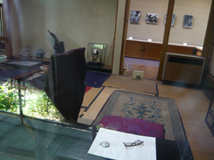 実篤がここに引っ越してきたのは1955(昭和30)年だそうで、その頃は京王線もトコトコ電車で土地も安かったんでしょうけど、それにしても広いお家にお住まいで……。晩年を過ごした住居も、公園の外に建っている住宅なら3軒分ぐらいはありそうです(^_^;) 公卿の家系で、もともとお金持ちだったみたいですね。週末は内部も公開されています。