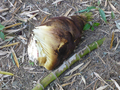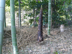 さて、帰ろうかなと思って戻ってくると、係員の方でしょうか、たけのこ掘りをしていました。そう思って見回すと、あちらこちらからニョキニョキたけのこが伸びてきてます。食べるというよりは、庭を野生に返さないために掘り出すことになるのでしょう。なかなか大変な作業のようにお見受けしました。でも、誰が食べるのかな?(笑)
