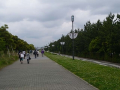 千葉マリンスタジアムへは、海浜幕張駅はシャトルバスが出ていますが、薄曇りの午後だったので歩いてみました。東京駅よりはちょっと遠いのかもしれませんが、こちらは緑もいっぱいで、気持ちよく歩けます。角を曲がるとスタジアムが見える!という感じで、はじめて来たときはうれしかった記憶があります。