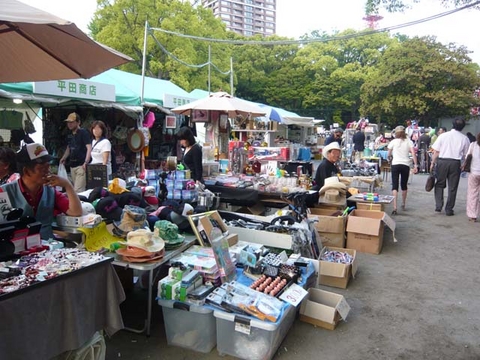 そんなこととは関係なく、「開港記念バザール」は、食べ物の屋台も、食品や雑貨も、全国からいろいろな種類のものが集まって、なかなか楽しい催しです。駅に近いほうにはハンバーガーや焼きそば、お好み焼、たこ焼きとおなじみの食べ物の屋台が並び、その先には八百屋さんや漬物屋さん、鍋釜を商っている店もありました。有名な刃物の里の包丁屋さんとか。切れ味のよさそうな包丁にちょっと心ひかれたのですが、電車に乗って持って帰ったら、捕まっちゃったりしないのでしょうか?(笑)