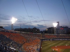 何が「久しぶり」かと言いますと、横浜スタジアムに行ったのが(笑) 自分がちょろちょろ出かけていたり、チームが地方巡業だったりで、1ヵ月半ぶりぐらいです。こんなに間があいたのは何年ぶりでしょうか(^_^;) すっかり日が長くなって、7時を過ぎても空はまだ明るさを残していました。そして、ゲリラ豪雨が話題となる中、これも久しぶりにまったく雨の心配がないナイトゲームでした。そしてまた、チームが勝ったのもけっこうな久しぶり!(笑) 「どこまで弱いんじゃ、このチームは!」と言いつつ、負けてもいつもフツーな人々に会うのも久しぶりでした。おじちゃまの口癖は、「いつ勝つかはわからないのだから、毎日、見てなきゃ、勝ちには当たらない」。ところが、ひっさしぶりに出かけて、勝ちに当たっちゃったから、めでたいめでたい(^_^;)