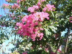 「暑いですねぇ〜!」しか話題のないこの頃です。お年寄りがかがんでいたりすると「すわっ、熱中症か!」などといらない心配までしてしまうではありませんか(-_-;) ちょっと出歩くと、コーヒーショップに入る回数が増えてしまうとか……。うんざりしながら、ペタペタと歩いていると、健気に咲いている百日紅を見つけました。これ、さる百日紅ですよね? 紅というより、ピンクだけど(笑)