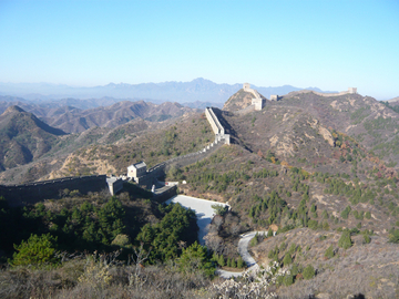 金山嶺からは、険しい山の上に築かれ、あまり修復されていないという司馬台長城まで歩いていけるそうです。私たちが引き揚げる頃、ハイキング装備のドイツ人の団体が上り始め、9日間かけて長城をたどるのだと聞きました。日本にもこういうツアーがあればいいのに……。観光化されているところを見学するだけではなく、延々と長城を歩き続けるというのもおもしろそうです。全部は歩ききれないでしょうけど(^_^;)