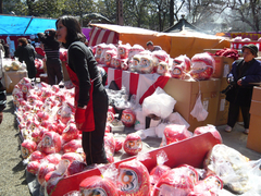 景気が悪いとだるまの売れ行きもイマイチなんでしょうか。景気が悪いからこそ売れる、とか? 深大寺のだるまは「高崎達磨」と書いてある店が多いようです。高崎で初売りされただるまが、関東のあちこちを回って、最後が深大寺と聞いたことがあります。ときおり手締めの声が聞こえてくるのは、だるまが売れた証。でも、売れるのは小ぶりのものが多いような。でっかいだるまは、選挙用ですかね? 来月は盛大に売れるかも?(笑)