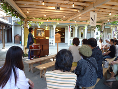 この参詣客を集めた御師と呼ばれる人々が参道に屋根を連ね、お祓いや神楽でもてなしたことから、「おはらい町」と呼ばれるようになったといいます。いまでも風情のある木造建築が立ち並んでいて、町の中央には「おかげ横丁」も。伊勢特有の町並みである妻入の建物や蔵、桑名の洋館などを再現したり移築したりして、江戸時代末期から明治時代初期の門前町の町並みを再現した横丁で、いたるところに縁台が置かれ、紙芝居なども上演されていました。1993年(平成5)年にできたといいますから、まだ比較的、新しい観光スポットです。