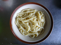 この節電の時代?に、13分間、電子レンジがうなり続けているというのはちょっとストレスかな(笑) それでもその間に具材を調理して、あっという間に昼食が完成です。具材を調理してって……、今回はピーマンたけのこザイーサイ&牛肉炒めの残り物をのせただけ(笑) この炒め物は、ザーサイの塩味があるので調味料なしで作れるので、こっちも面倒がないのです(^_^;)ついでに翌日は乾麺の讃岐うどんを試してみました。こちらは11分で冷やしたぬきうどん完成。その次の日はおそば。なんだか面白くて、毎日、麺類ばかり食べています。インスタントラーメンは作れないのかな?(笑) スープのあるやつは、鍋で作ればいいんですよね……(^_^;)