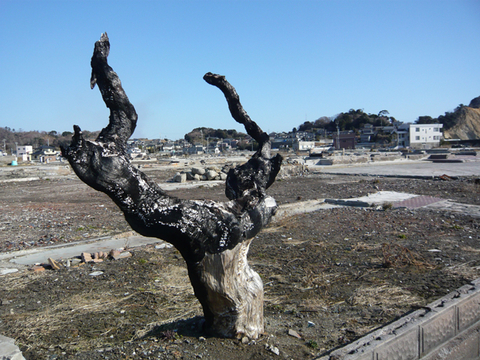 沿岸部に行くと、いまだにまるっきり何もない風景が広がっています。いまだにというのはちょっと変ですね。津波で完全に破壊された家々の残骸は片付けられていて、広大な土地に家の土台だけが残っています。直後はまるっきり何もないわけではなく、やっと「何もない」状態にまで片づいたということでしょう。もう少し「片づけ」が進んでいるところでは、本当にただただ土地が広がっていましたが、南相馬から北上した沿岸部は、土台がまだ残っている状態でした。