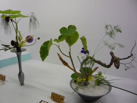 私は、お茶席に飾られているようなシンプルな花が好きで、「ひっそり」というイメージに魅かれますが、モダンアートのような作品の近くで、初老の女性が「若い人はこういうのが好きなのよね」という言葉を小耳に挟みました。くしくも「若くない!」ということを露呈、かな(^_^;) アートはアートとして楽しいですが、やはり「生け花」という言葉にとらわれてしまうようです。