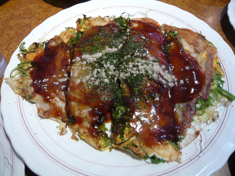 卵と刻みネギをたっぷり、豚ばら肉をのせてシンプルに焼いた、なんでしたっけ、「南平焼」? メモを取らなかったので、メニュー名を忘れてしまいましたが(-_-;) 確か、そんな名前だったと思います。これはこれで、さっぱりしていてなかなかおいしかったです。それにしても広島のお好み焼はボリューム満点。人数より少なめに頼んでも、「もう、野球はやめてホテルに帰って寝る?」というぐらいお腹がいっぱいになりますね。