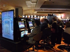 ホテルに着き、メンバーズカードを見せて10ドル支払うと、バウチャーのようなものを渡されます。これを持ってカジノのカウンターに行くと、カジノでのお遊び代2ドルを現金でくれるのです。カジノで遊ばなければ、ランチ8ドルになってしまいます。私たちは時間が早かったこともあり、ちゃんとスロットマシンに向かいました(笑) しかし、私が1ドルでまごまごしている間に、カレンの2ドルが終わってしまったので、そのまま引き上げ、結局、私はランチ9ドル(笑) もう一つKENOというギャンブルの券が1ドル分ついてきて、カウンターで数字を言ってカードをもらうのですが、何が行われているのかわからないうちに、スタッフの人に「残念でした」と言われました(笑) ビギナーズラックはなし(-_-;;