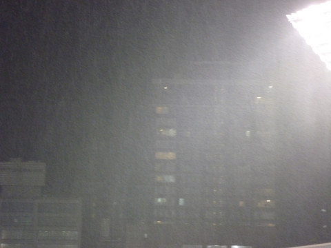 小雨が降ったり止んだり。5回終了時に、なぜか不思議の勝ちあり的にかっていたので、「もうコールドでいいぞ〜」と(笑) ずいぶん久しぶりに昔、外野の(たぶん)応援リーダーをやっていた兄さんが現れ、町内会の座長とともに外野的な応援リードをして遊んでくれて、これがすごくおもしろかったです。ホームの外野に行かなくなって、もう何年も経ちますからねぇ。外野もおもしろいのだけれど、最近は外野のエネルギーについていかれなくて(^_^;)結局、7回でザーと降りだし、コールドになりました。急に秋になって、もう、ナイトゲームは「寒い!」という感じです。試合が?