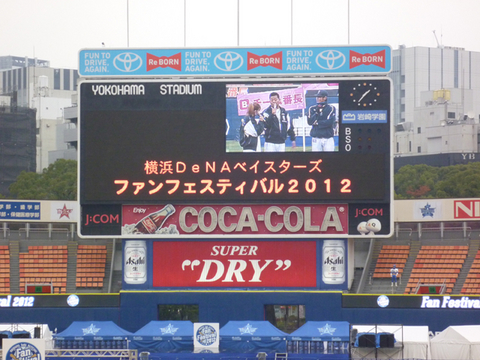 横浜スタジアムのファンフェスティバルに行ってきました。昨年までは、ファン感謝デーとか言ったような気がしますが、今年は感謝はなしで、入場料300円です(笑) しかも小雨模様の寒い日。それでもけっこう多くの人が集まりました。関内の駅を降りて、信号を渡ると長蛇の列! ひぇっ、これに並ぶの?と思いましたが、これは選手とハイタッチをして入場したい人の列だそうで、ハイタッチしなくていい人は、別の入口から。そちらは空いていますと言われたのですが、けっこう長い列ができていました。