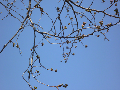 東京は、今日、桜の開花宣言をしたそうですね。5、6輪の花が開くと開花宣言になるそうですが、やはり都心は暖かいのでしょう。なんといってもヒートアイランドですから(笑) 多摩地域はまだ開花宣言はしません! って、私が宣言をする権限をもっているわけではありませんが。暖かい陽射しに誘われて、今日もふらふら桜の開花状況を点検してきましたが、まだ1輪も開いている花を見かけることはありませんでした。