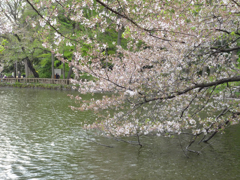 今日は、天気もまあまあよく、暖かくもあったので、公園は家族連れなどでにぎわっていました。そうか、まだ春休みなんだ! どおりでバスや電車の中にうるさいガキが……と、正直に言ってしまうと白い目で見られるかもしれませんが(笑) カップルで乗ると必ず別れるという伝説を持つ池のボートも家族連れなら別れる心配はない(?)からか、水上から最後の桜を楽しんでいるようでした。お互いによくぶつかりませんね、というくらいボート密集状態です。