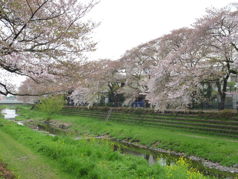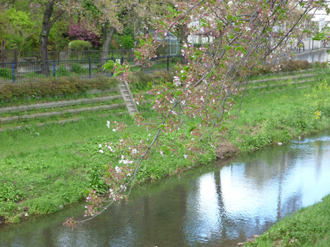 野川は、ある意味、欠陥のある川で、流れがまっすぐすぎるのです。従って、ちょっと雨が降るとドーッと水かさが増え、流れもやけに速くなります。きっと菜の花はやられちゃうだろうなぁと思っていたら、案の定、水辺に近い草はいっきになぎ倒されていました。それでも短時間だったせいか、根こそぎもっていかれたわけではなく、横たわっている程度で、思ったより元気。野生の草はなかなか根性があるので、数日のうちには甦りそうです。