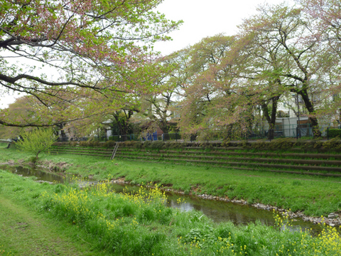 野川は、ある意味、欠陥のある川で、流れがまっすぐすぎるのです。従って、ちょっと雨が降るとドーッと水かさが増え、流れもやけに速くなります。きっと菜の花はやられちゃうだろうなぁと思っていたら、案の定、水辺に近い草はいっきになぎ倒されていました。それでも短時間だったせいか、根こそぎもっていかれたわけではなく、横たわっている程度で、思ったより元気。野生の草はなかなか根性があるので、数日のうちには甦りそうです。