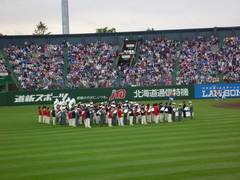それにつけても寒かったです〜。東京を出るときに天気予報では、旭川は晴れで気温もそんなに低くないということだったのですが、実際は小雨がぱらつき、気温も10℃そこそこ。一応、寒さ対策のコートとウィンドブレーカーは持って行ったものの、到底、これではしのげず、せっかく買ってもらったビールを持つ手が震え、歯の根が合わないというくらいの寒さ。勝っていたから最後までいましたが、負けていたら早々に帰ってしまうところでした。なんのために来たのやら(笑)