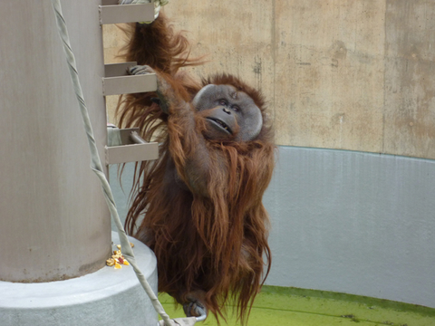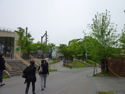 ゴマフアザラシが水柱をドーンと行ったり、来たりするのも大迫力でした。水のチューブはわかっているのですが、本当に近くて、思わず避けてしまったり。旭山動物園の人気の理由がよくわかります。いろいろ見せ方が工夫されているので、おとなでも本当に楽しめます。私はどちらかといえば動物は苦手(むしろ、怖い)なのですが、それでも楽しかったので、動物好きの人は何度も足を運んでみようという気になると思います。エゾシカやエゾオオカミなど北国の動物をはじめ、猿たちも充実したラインナップ。オランウータンのモグモグはなかなかじれったく(笑)、隣のテナガザルがいろいろパフォーマンスを見せてくれて、のたりのたりのオランウータンをカバーしていました。そのつもりはないでしょうけど(笑)