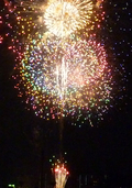 今日は調布の花火大会。ここの花火は毎年、開催日が変わるので困りものなのですが、今年は3年ぶりに夏の花火になりました。秋も深まってからの開催では、もう一つ気分がのらないとという感じですから(笑) そのかわり、例年、多摩川沿いに2ヵ所設けられる会場が1ヵ所になりました。とはいえ、1ヵ所で十分! 打ち上げ時間は1時間ですから、隅田川などに比べれば規模は小さいといえるでしょうが、今年は新作もたくさんあり、堪能しました。