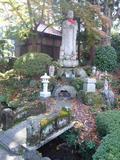 富士山麓はすっかり秋の気配で、静かな境内にも落ち葉が舞っています。車を誘導してくれた人は、再び箒を手に取ると、これを黙々と掃いています。門を入るとすぐ左側に十一面観音を祀った観音堂があります。郡内三十三観音の8番札所だそうですが、残念ながら十一面観音は秘仏で拝観はできません。