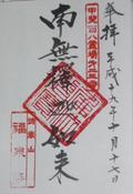 住職さんは22代目だそうです。「お寺の維持はとても大変ですが、この杉戸などはやはり大事に守っていきたいものですから」とおっしゃっていました。御朱印代をお渡ししようとすると、「では、ここへ」と募金箱を示されました。それも23件目にして初めて。まったく商売っ気なさそうで、これでは確かにお寺の維持も大変かもと。大きなお世話ですね(^_^;)