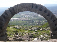 丘の上に残る遺跡には、当時の繁栄の面影を見ることができる。すべて大理石のトラヤヌス神殿は、正面6柱、側面9柱のコリント様式。すべて大理石というとすごく贅沢な感じがするが、大理石がたくさんとれるこの辺りではエフェソスなどでも道路の敷石になっていたくらいで、そんなに贅沢なイメージではないのかもしれない。よっこらしょと階段を上がっていくと、素晴らしい遺跡群が目の前に広がり、眼下には緑の畑と街が眺望できる。