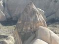 いろいろな奇岩の風景を次々にめぐり、それぞれ特徴的で驚きの連続なのだが、しまいにはどこがどこやら、名前と顔が一致しなくなっている。たぶん、ここはギョレメの谷。ウチヒサルからギョレメに向かう途中にある絶景ポイントだと思う。我ながら、無無責任な……(^_^;) 白い、すべすべした岩がウエーブのよう広がっているのが特徴、かな?
